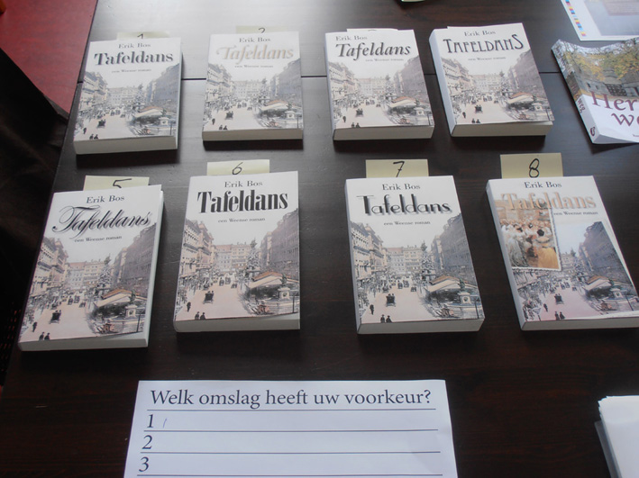 Ruurd de Boer is nog niet helemaal uit de typografie voor de in januari te verschijnen romen Tafeldans van Eric Bos (let op: het is Eric met een c). Het publiek mocht kiezen, en deed dat ook met veel enthousiasme. Nummer 7 werd de publiekswinnaar. Opmerkelijk is dat via internet een aantal boekhandelaren meestemde. Daar was de keuze unaniem nummer 6...